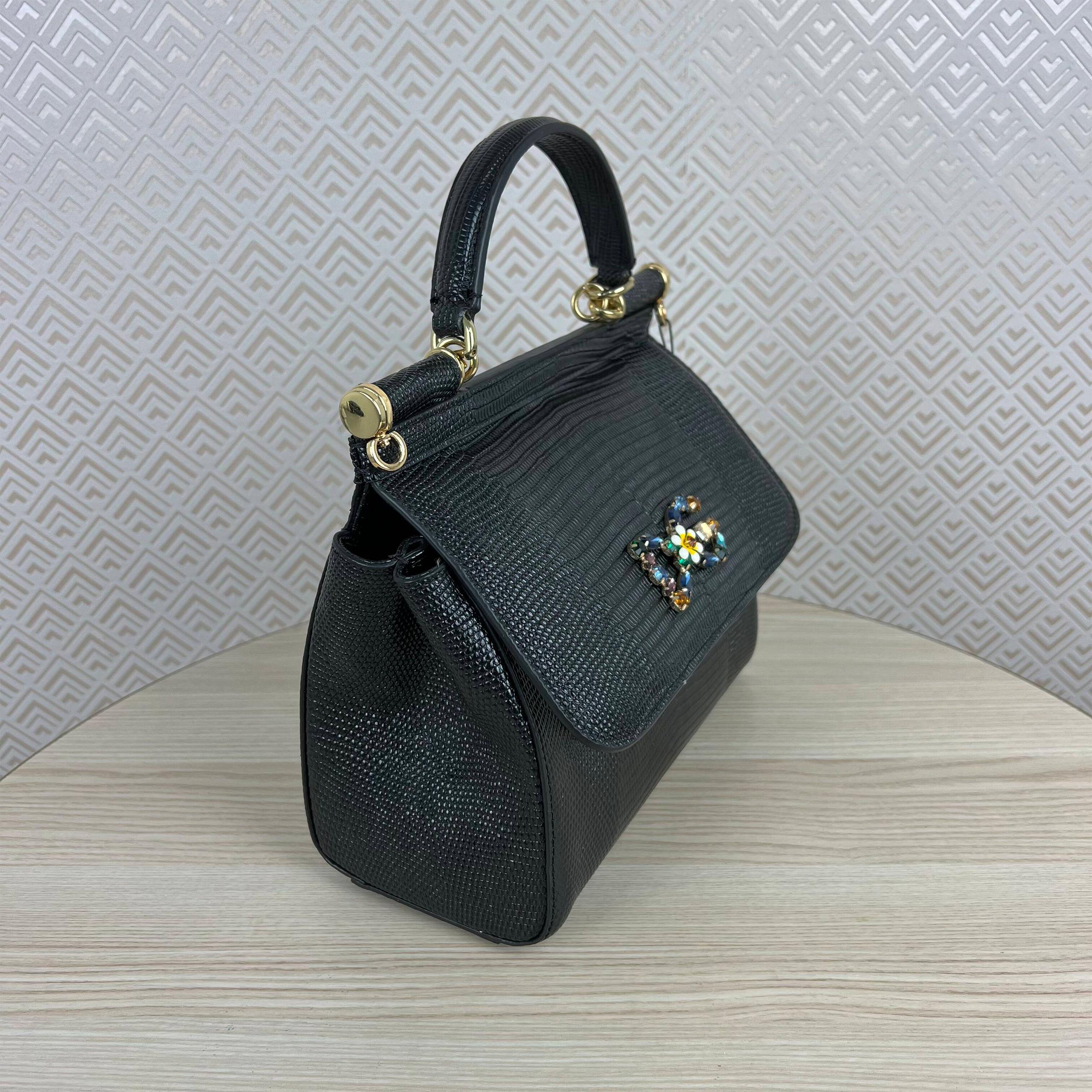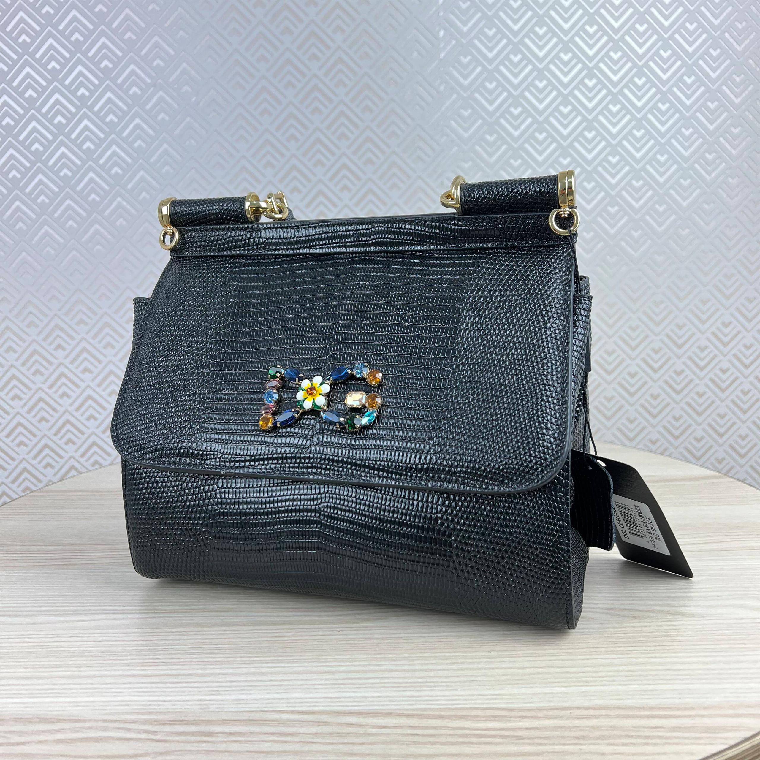 Medium iguana print calfskin Sicily bag with crystal DG logo patch